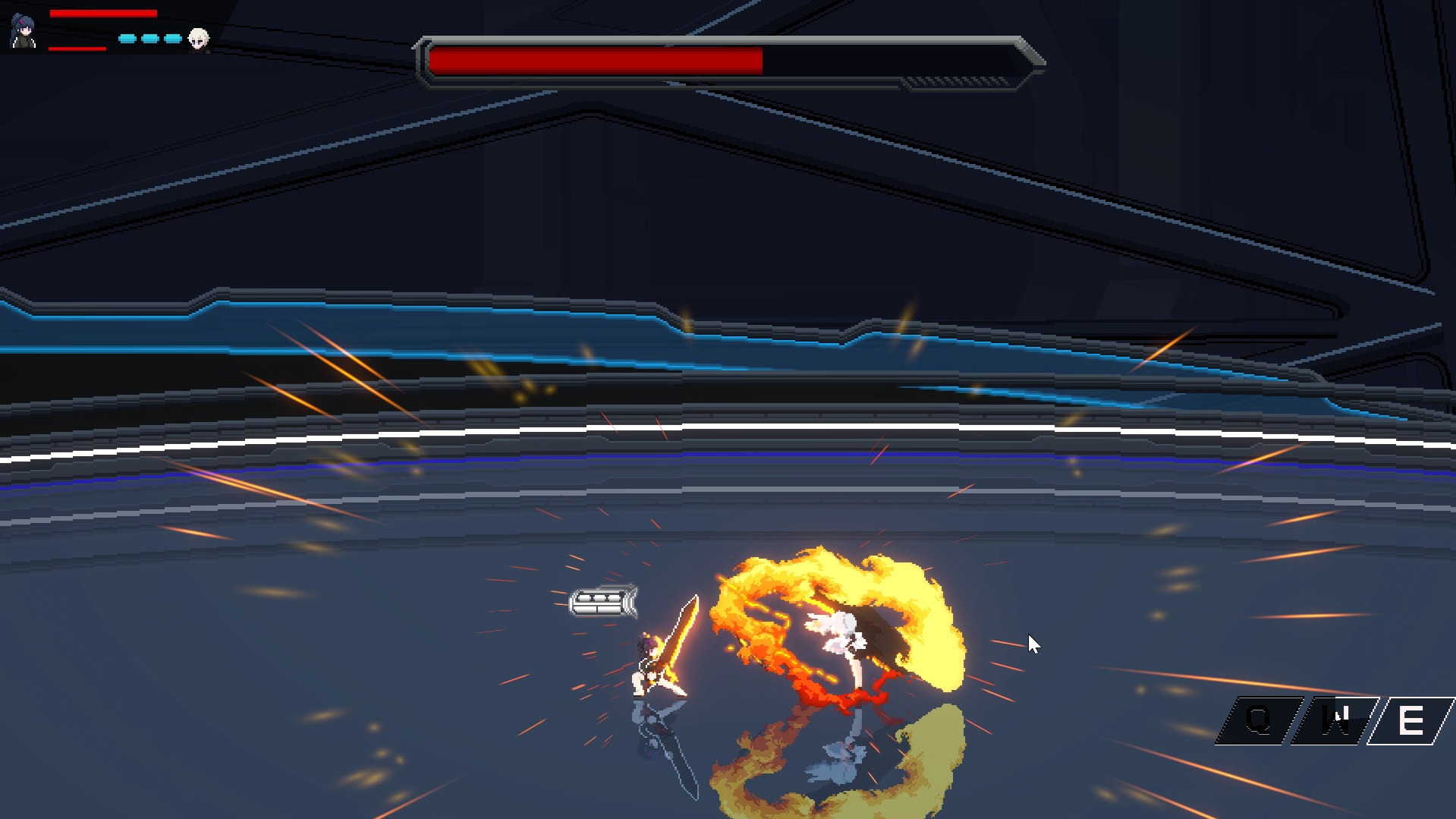 낙원은 태그를 활용한 2D 액션 플랫포머 게임입니다. 워프를 이용한 스타일리시한 원거리 전투와 대검과 패링을 중심으로 한 강렬한 근접 전투. 두 주인공은 서로 다른 방식으로 싸우며, 감춰진 세계의 진실을 쫓는 여정에 나섭니다.